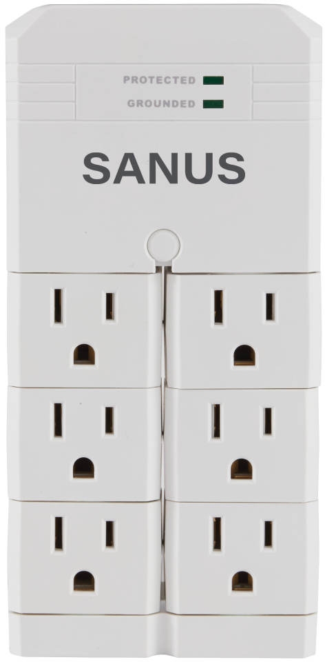 The On-Wall Surge Protector from Sanus features 6 rotating outlets to bring power to where you need it most. 6 rotating outlets allow for larger plugs without blocking other outlets.